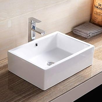 Vccucine Rectangle Above Counter Porcelain Ceramic Bathroom Vessel Vanity Sink Art Basin