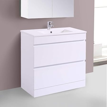 850mm Rigid High Gloss White Bathroom Vanity Unit Basin Sink Storage Cabinet Furniture