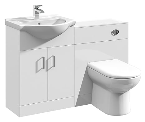 Cove 1250mm Vanity Unit Bathroom Suite Tap High Gloss White Depth 330mm