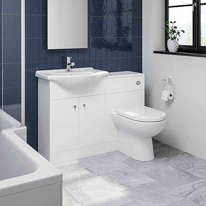 Home Standard Floe 1150mm Vanity Unit Bathroom Suite Ceramic Basin Back To Wall Toilet